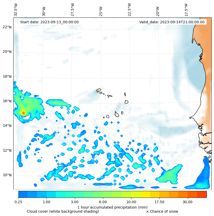 - Snow mixing ratio (g kg¯¹)
