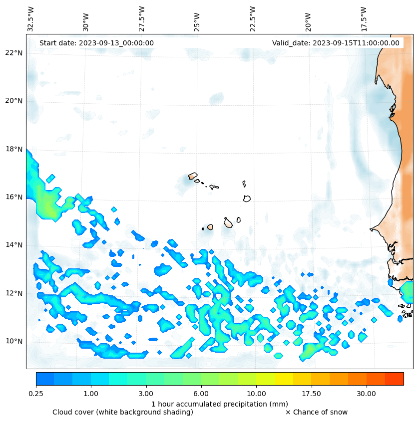 - Snow mixing ratio (g kg¯¹)