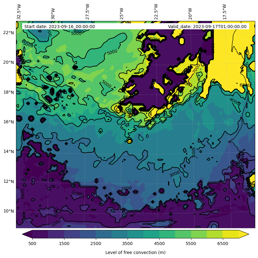 - Level of free convection (m)