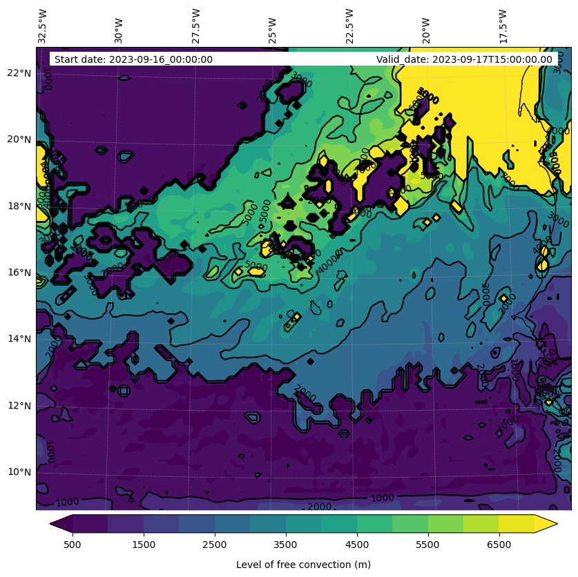 - Level of free convection (m)