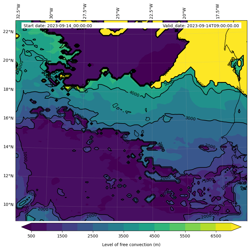 - Level of free convection (m)