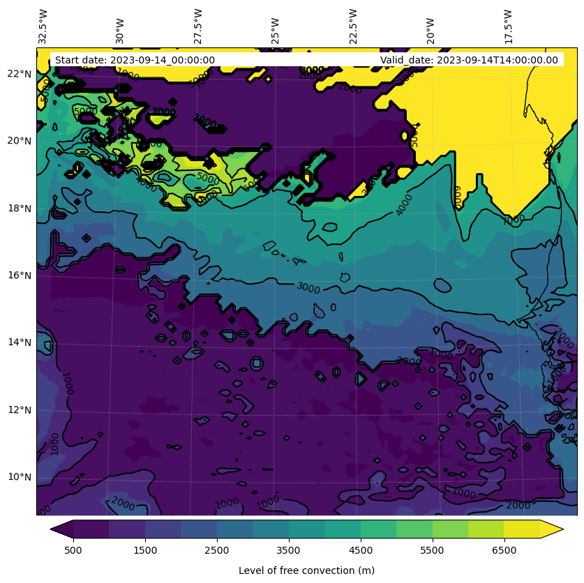 - Level of free convection (m)