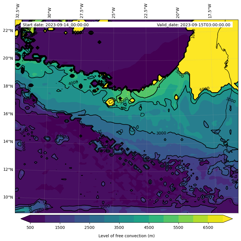 - Level of free convection (m)