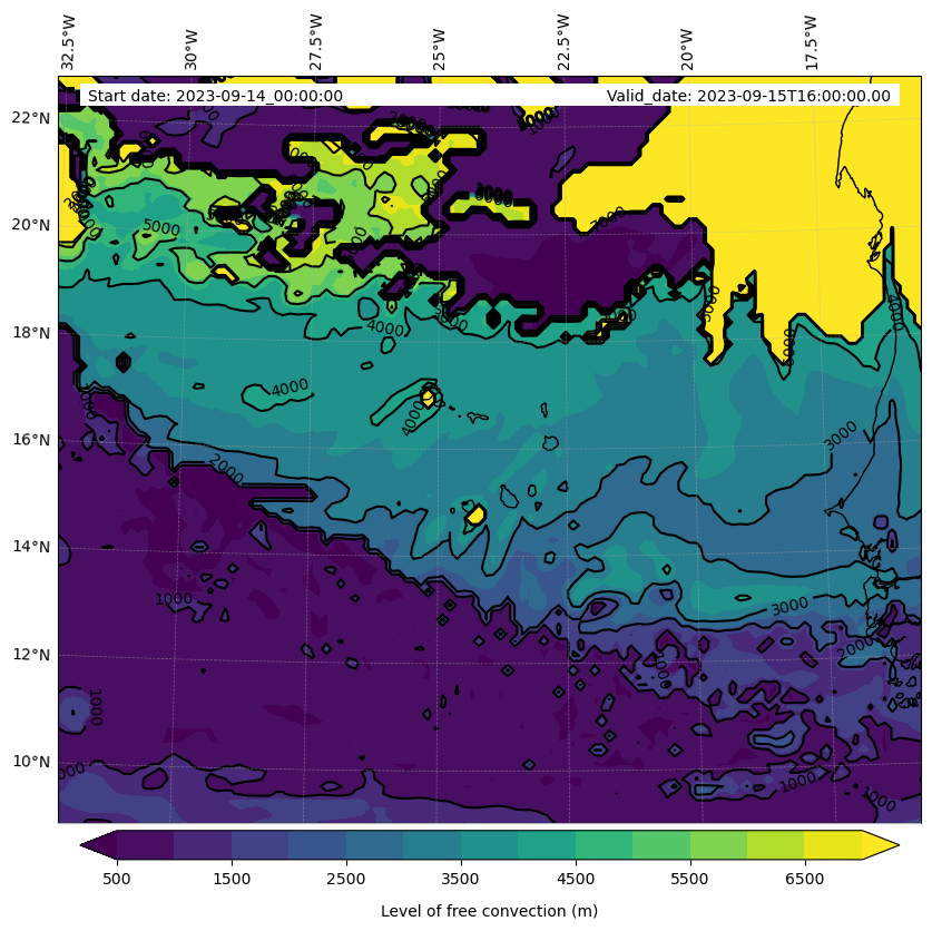 - Level of free convection (m)