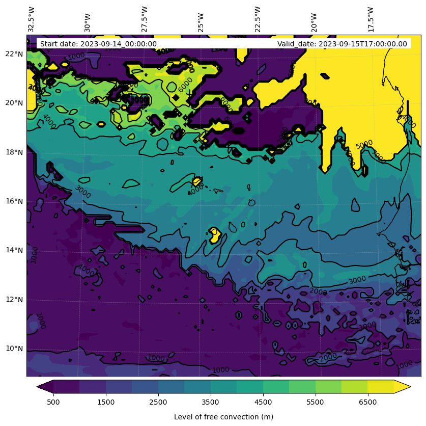 - Level of free convection (m)