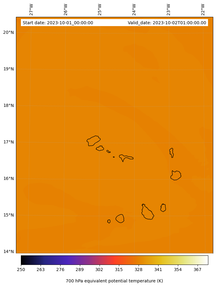 - Equivalent Potential Temperature (K)
