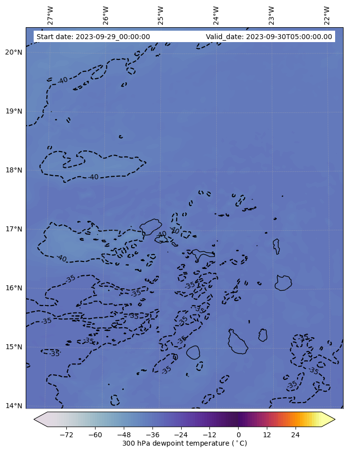 - Water vapor mixing ratio (g kg¯¹)- 300 hPa