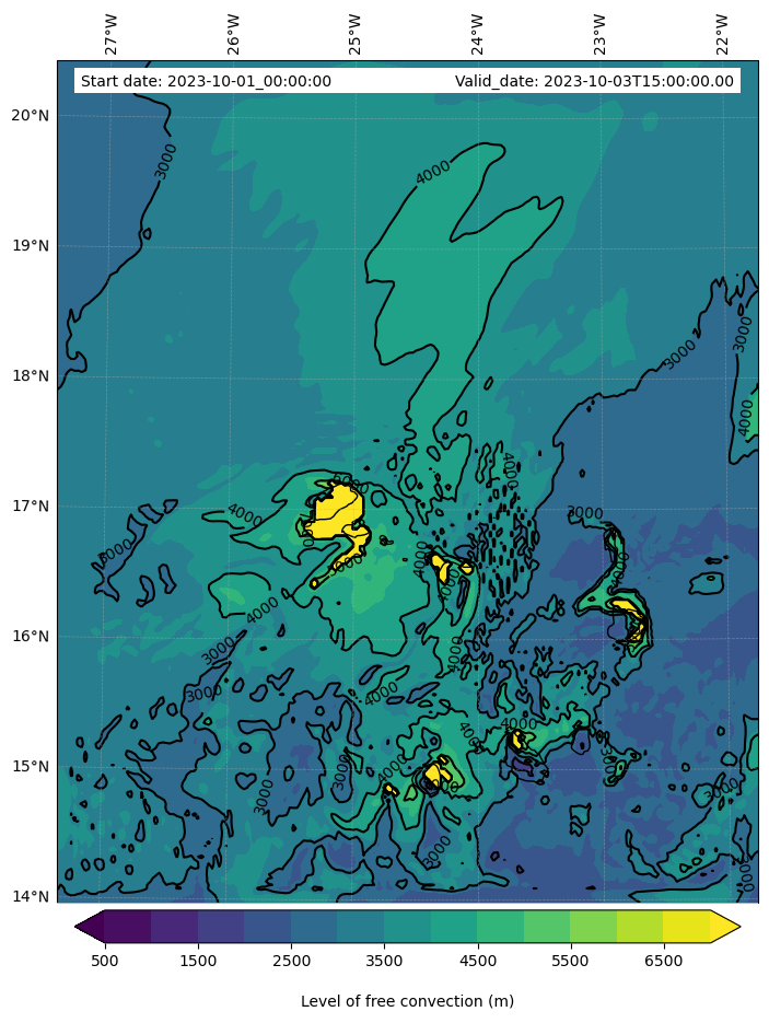 - Level of free convection (m)
