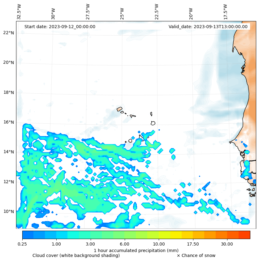 - Snow mixing ratio (g kg¯¹)