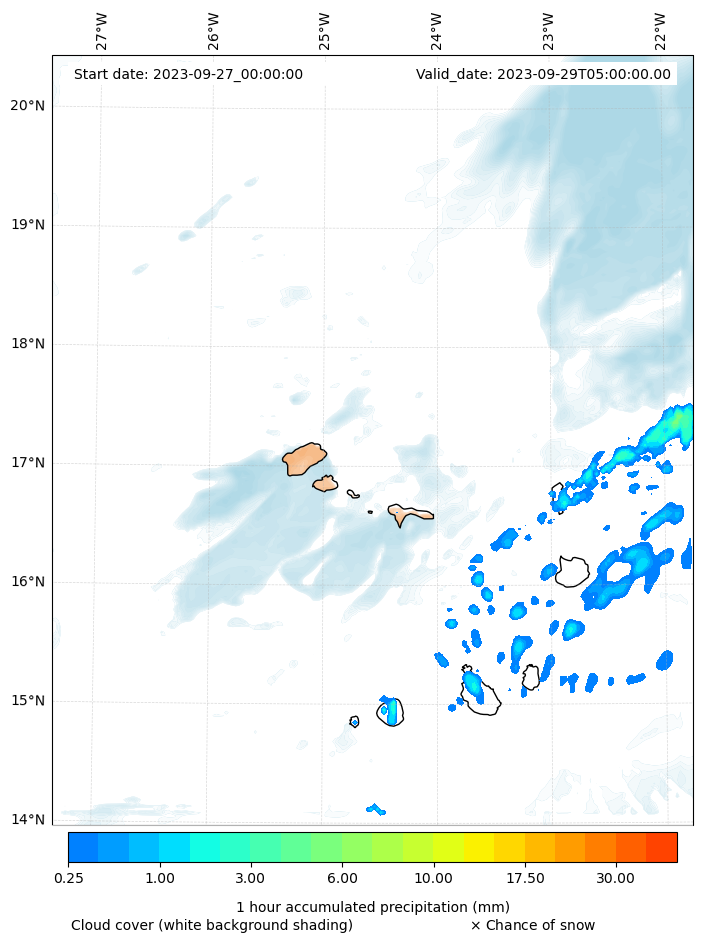 - Snow mixing ratio (g kg¯¹)