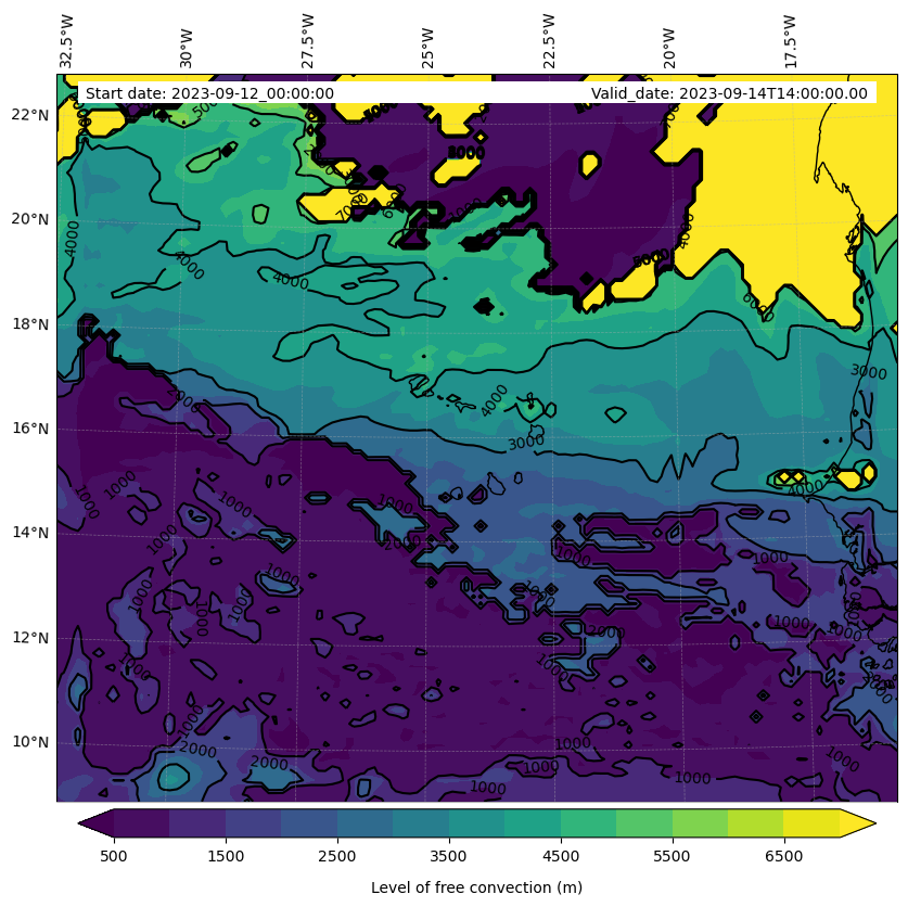 • Level of free convection (m)