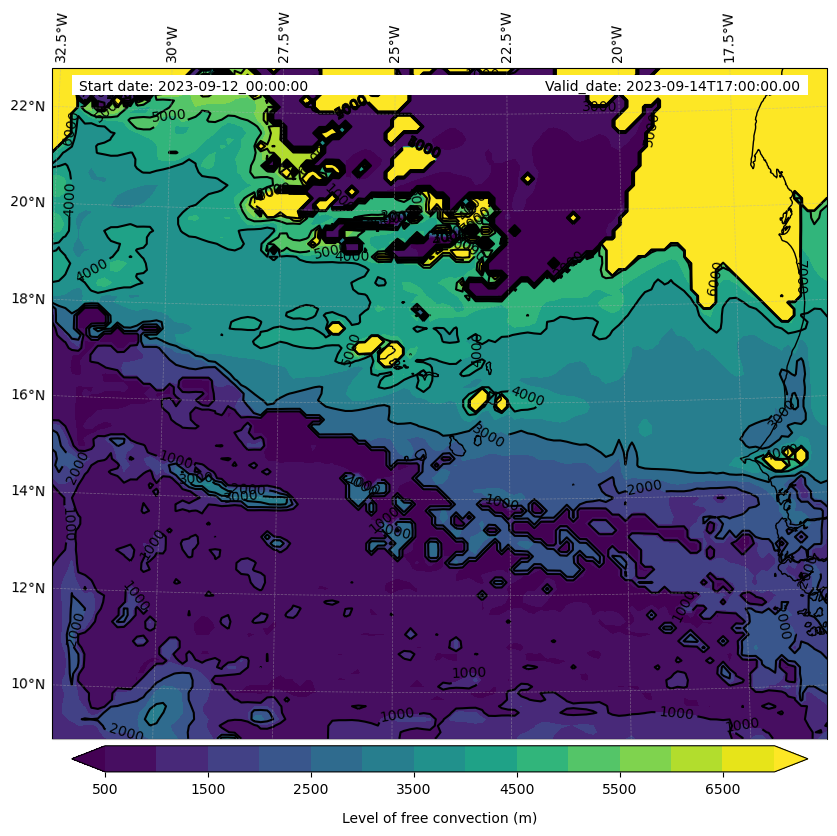 - Level of free convection (m)