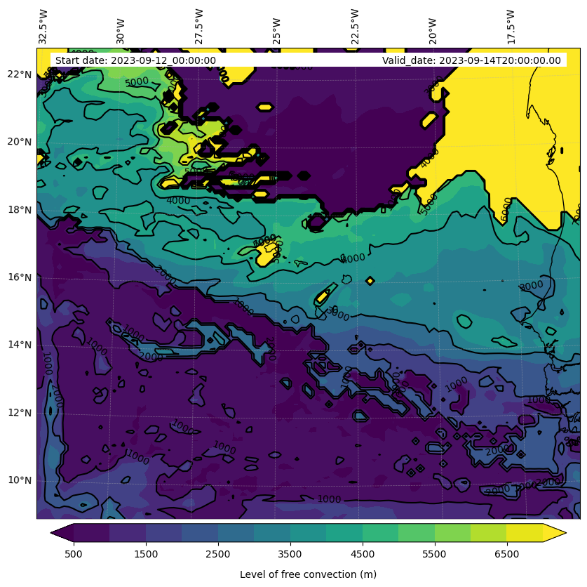- Level of free convection (m)