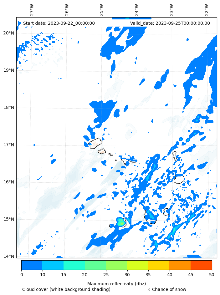 - Snow mixing ratio (g kg¯¹)
