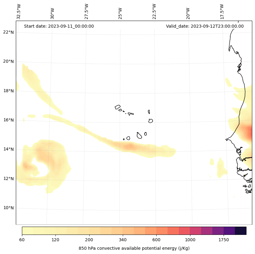 - Maximum CAPE (J/Kg)