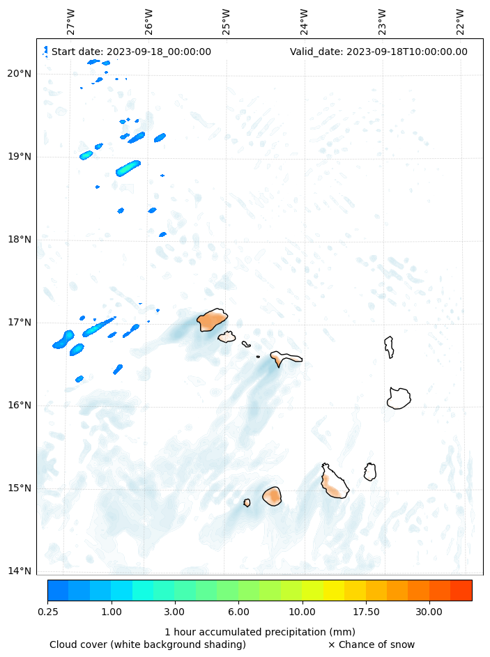 - Snow mixing ratio (g kg¯¹)