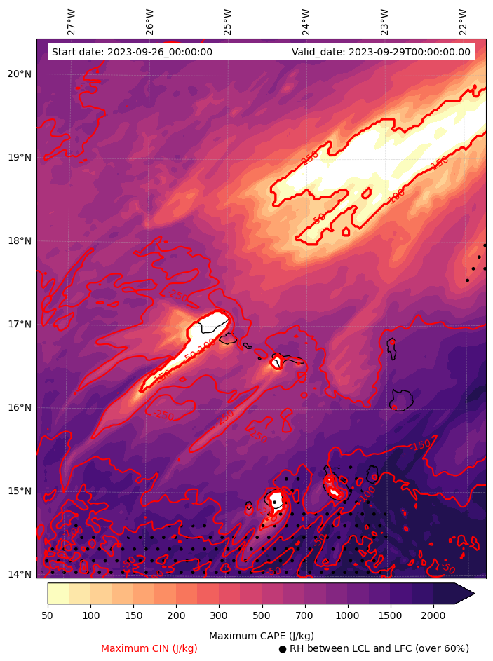 - Maximum CAPE (J/Kg)