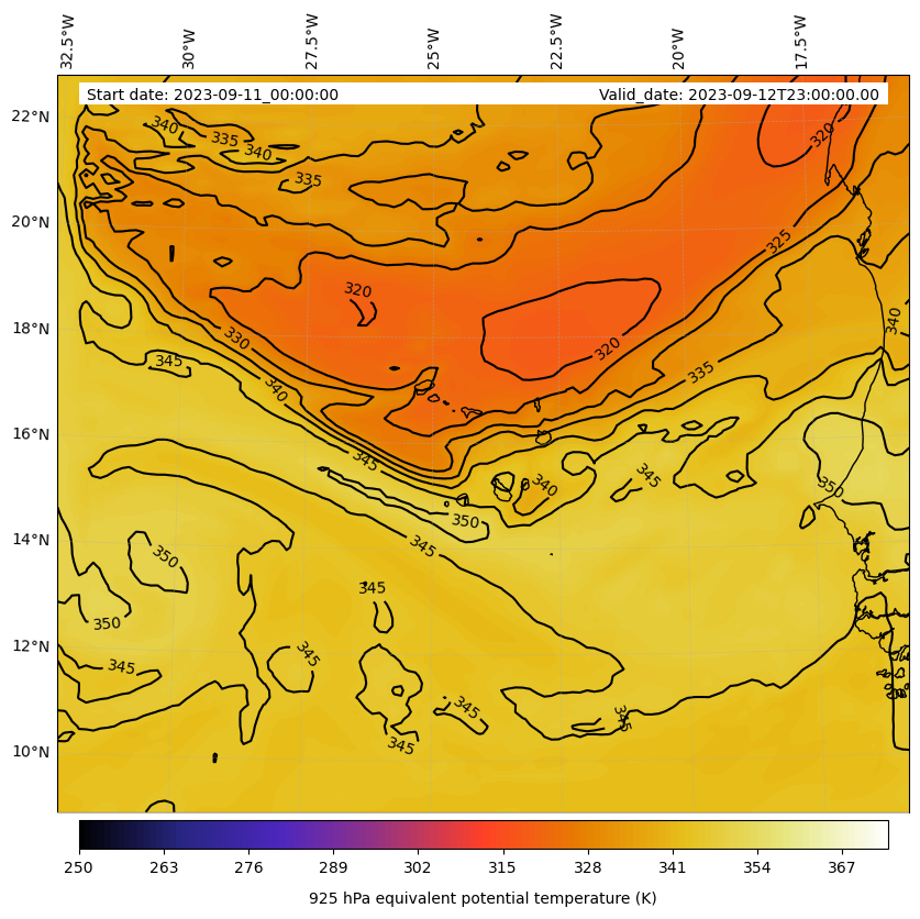 - Equivalent Potential Temperature (K)