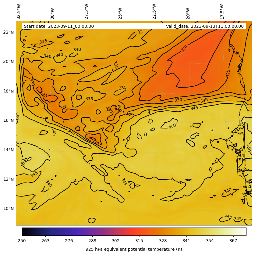 - Equivalent Potential Temperature (K)