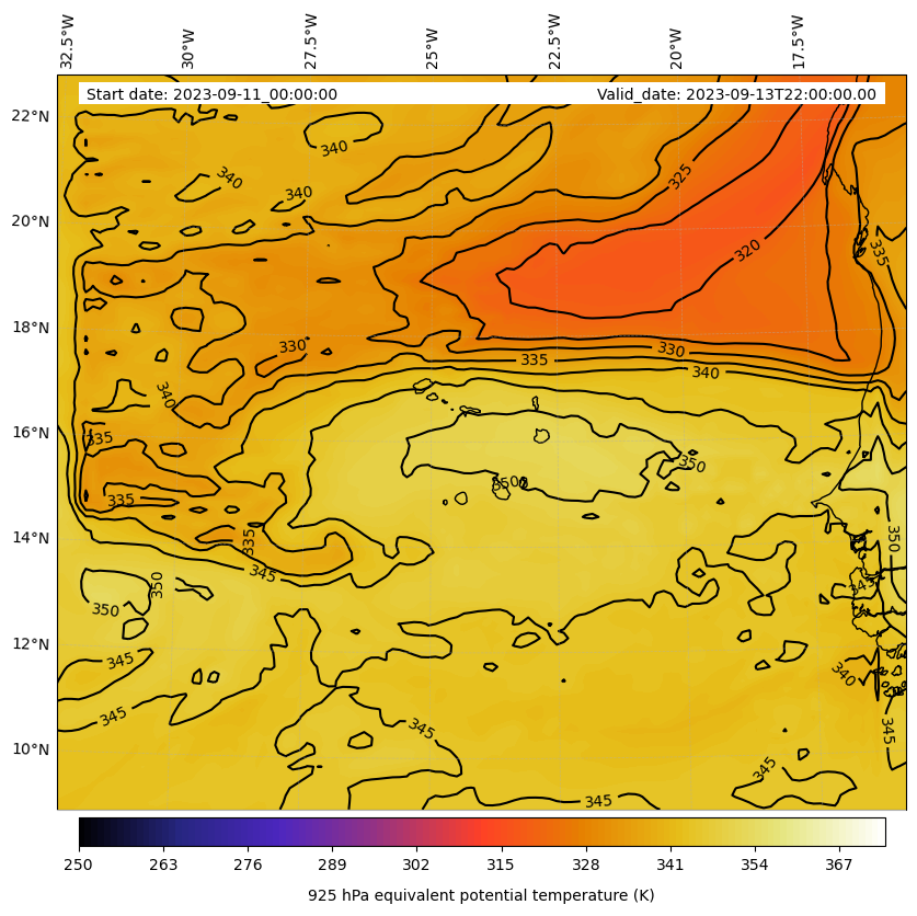 - Equivalent Potential Temperature (K)