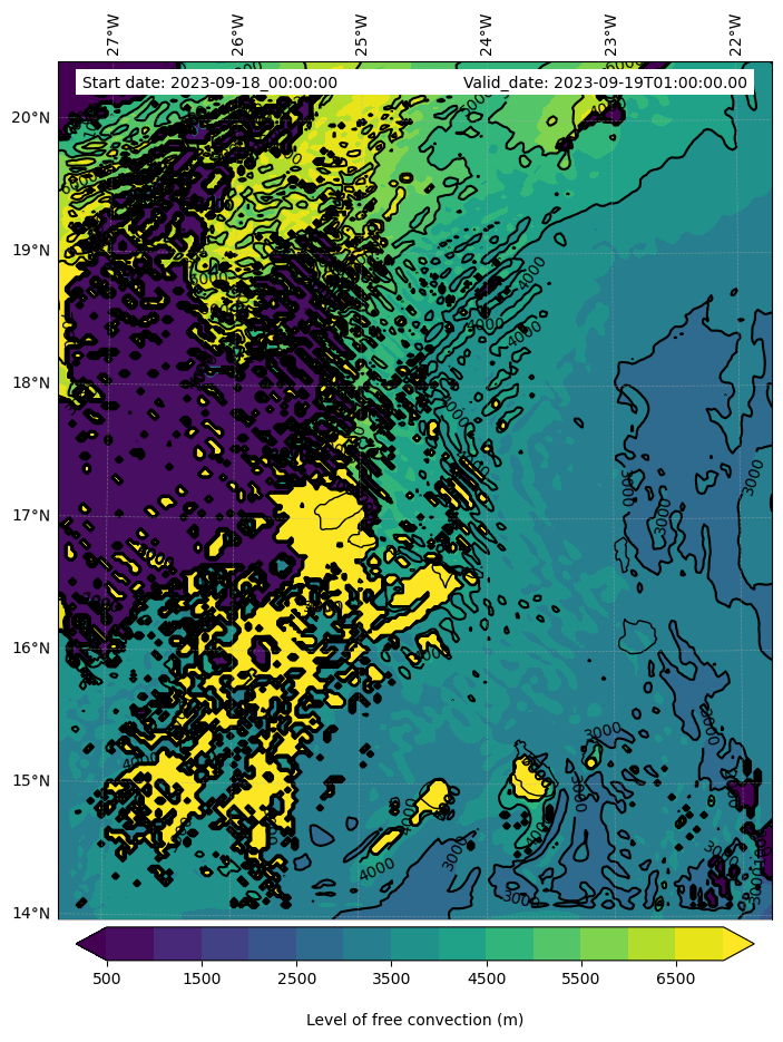 - Level of free convection (m)