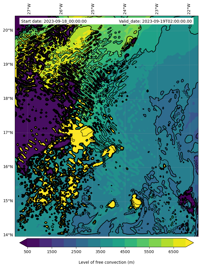 • Level of free convection (m)