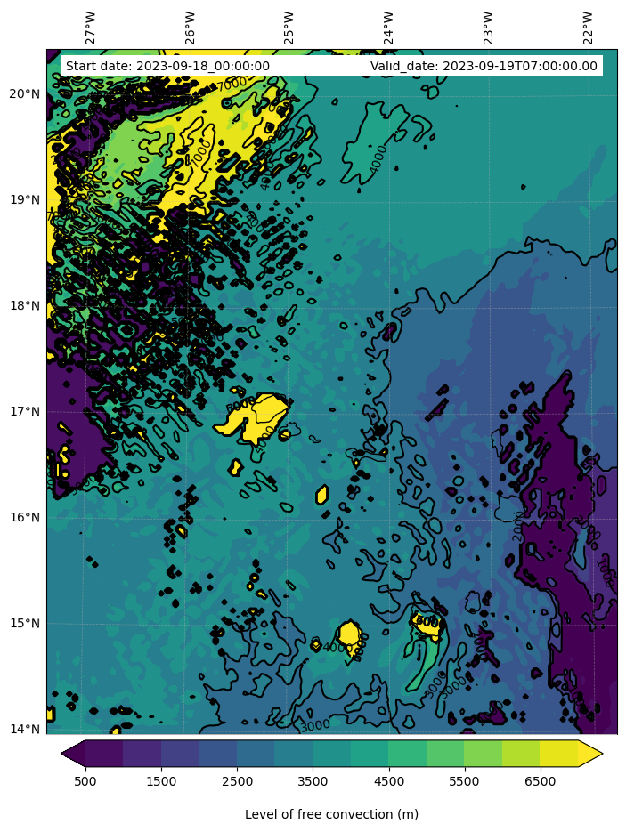- Level of free convection (m)