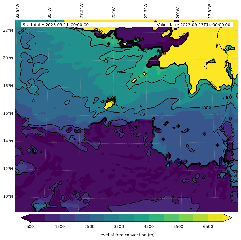 - Level of free convection (m)