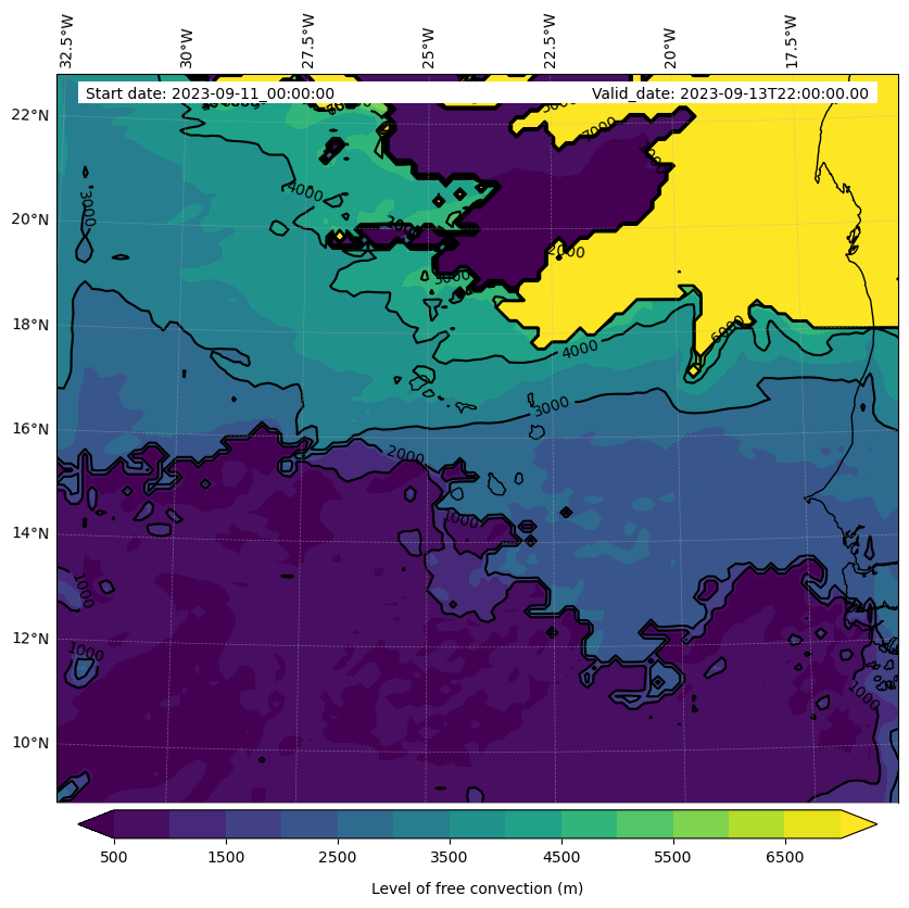 - Level of free convection (m)