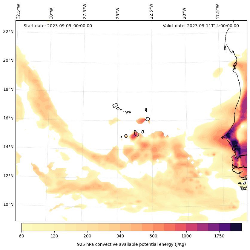 - Maximum CAPE (J/Kg)