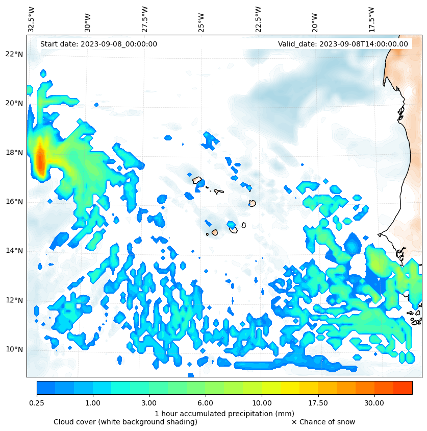 - Snow mixing ratio (g kg¯¹)