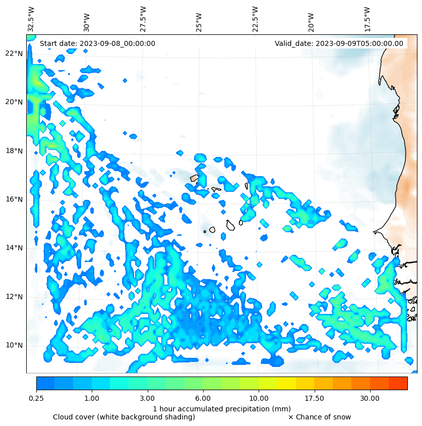 - Snow mixing ratio (g kg¯¹)