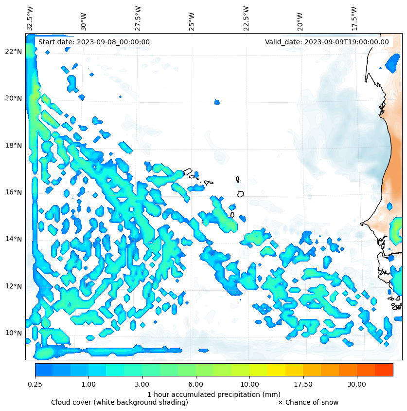 - Snow mixing ratio (g kg¯¹)