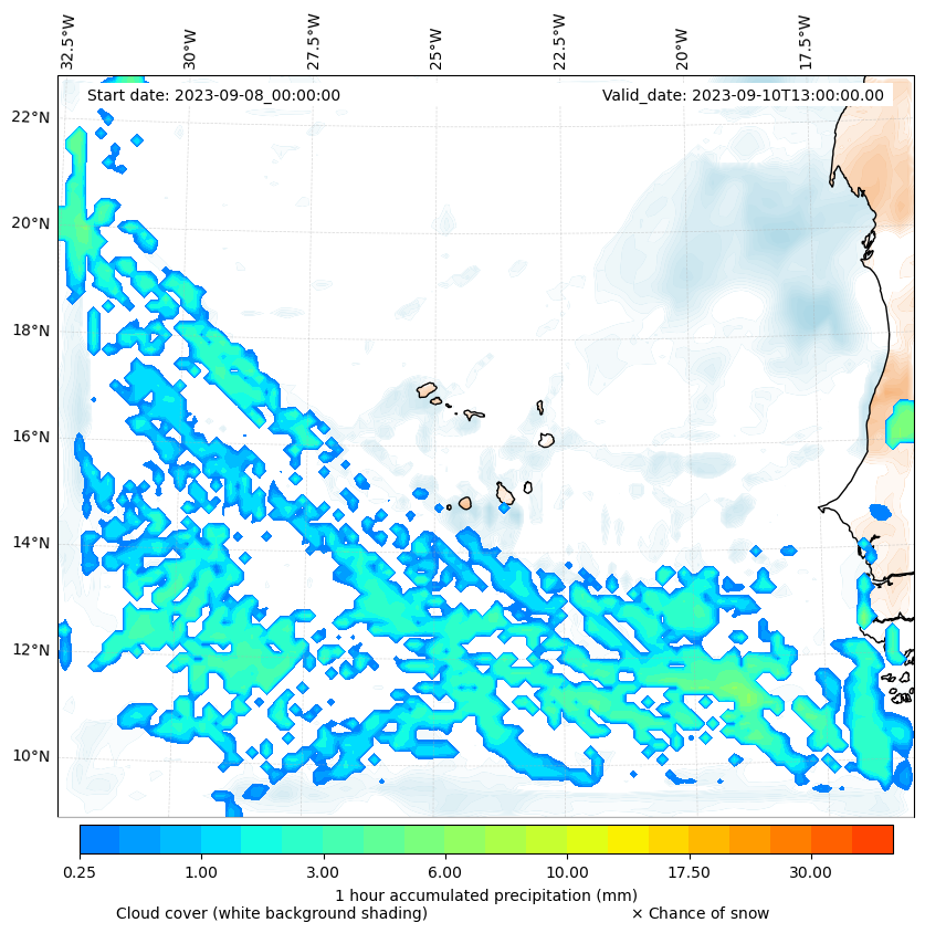 - Snow mixing ratio (g kg¯¹)