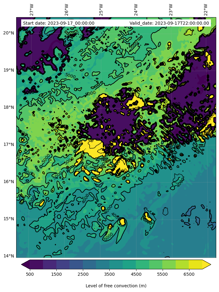 - Level of free convection (m)