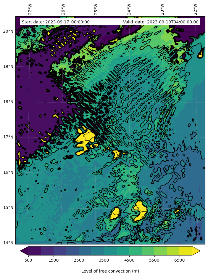 - Level of free convection (m)