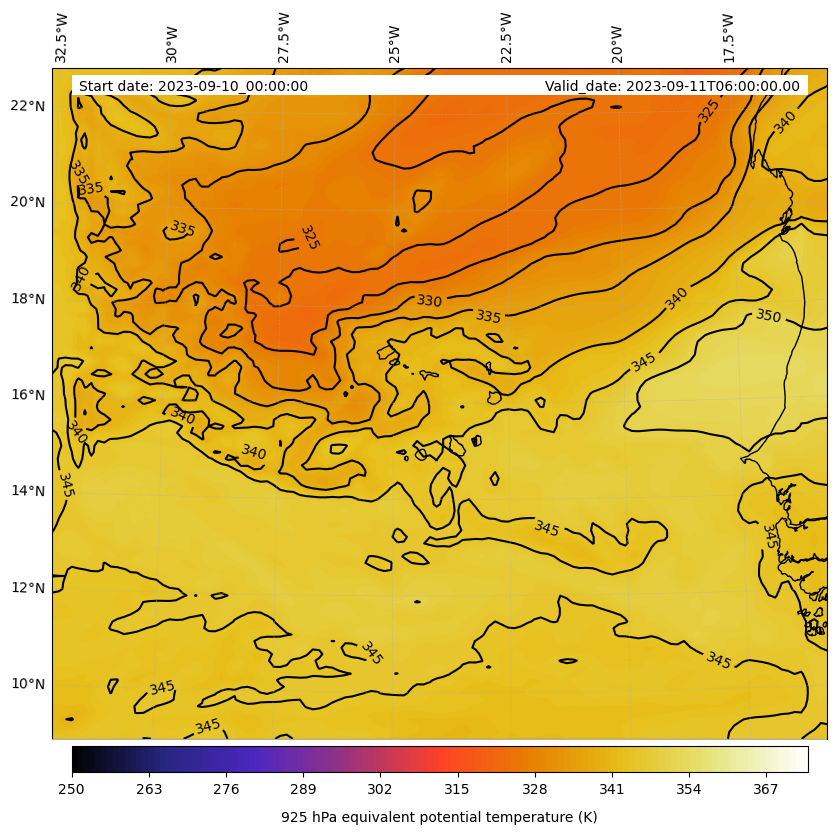 - Equivalent Potential Temperature (K)