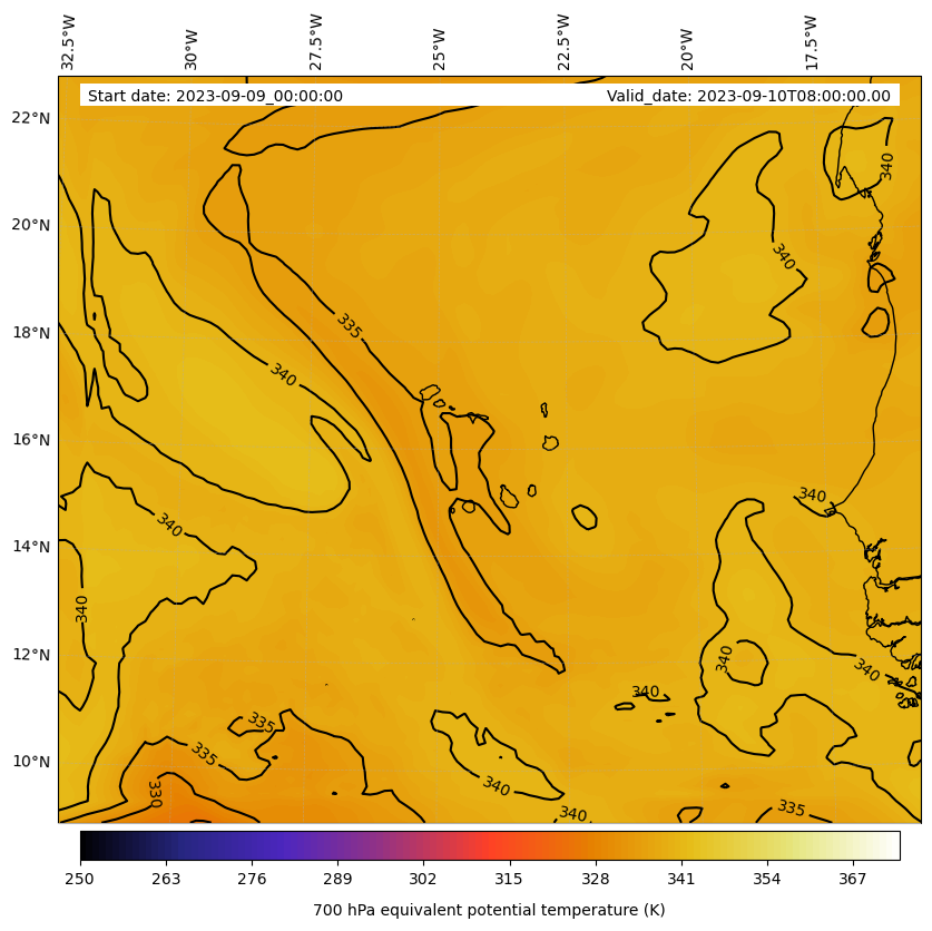 - Equivalent Potential Temperature (K)