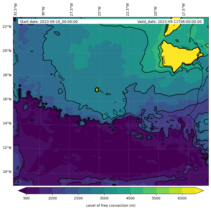 - Level of free convection (m)