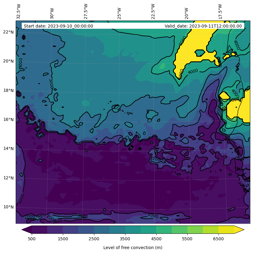 • Level of free convection (m)