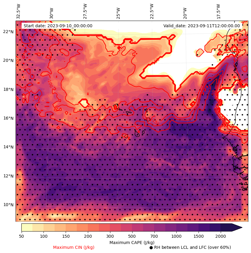• Maximum CAPE (J/Kg)