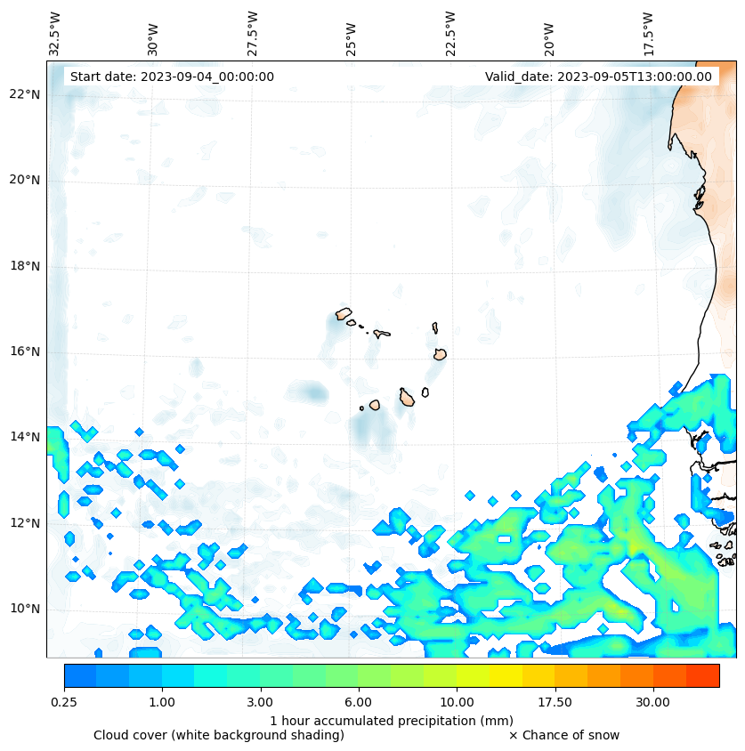 - Snow mixing ratio (g kg¯¹)