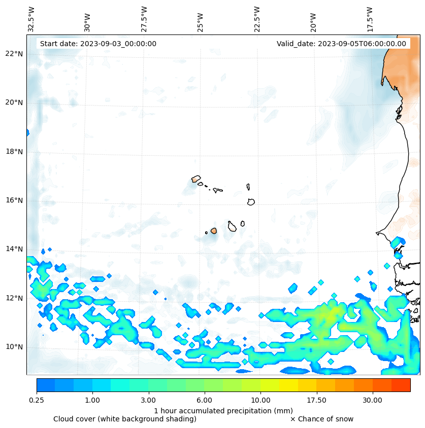- Snow mixing ratio (g kg¯¹)