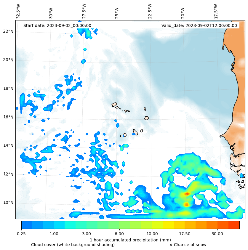 - Snow mixing ratio (g kg¯¹)