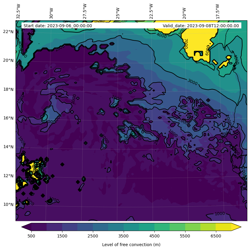 - Level of free convection (m)