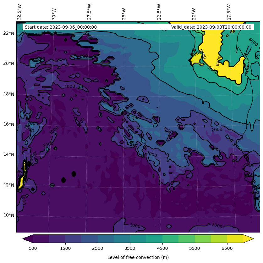 - Level of free convection (m)