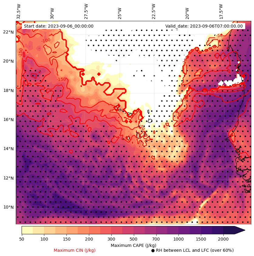 • Maximum CAPE (J/Kg)