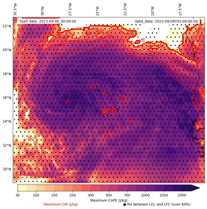 • Maximum CAPE (J/Kg)