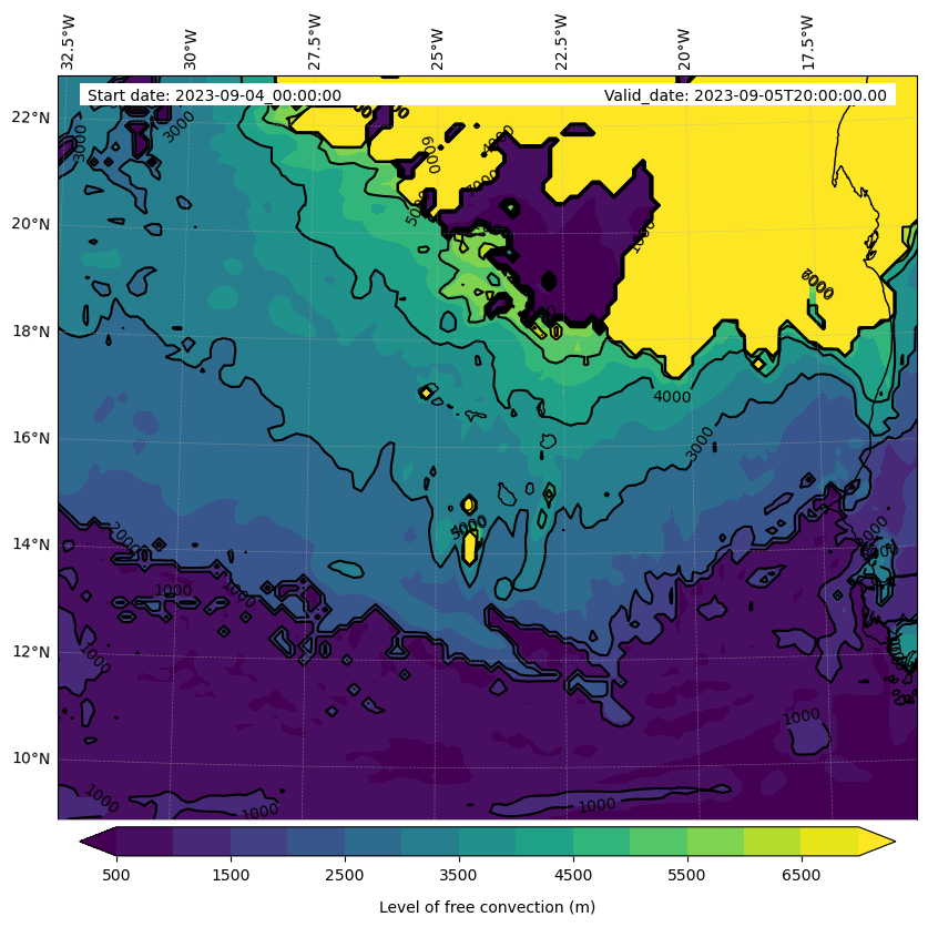 • Level of free convection (m)
