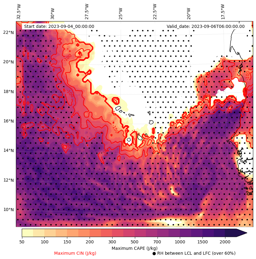 - Maximum CAPE (J/Kg)